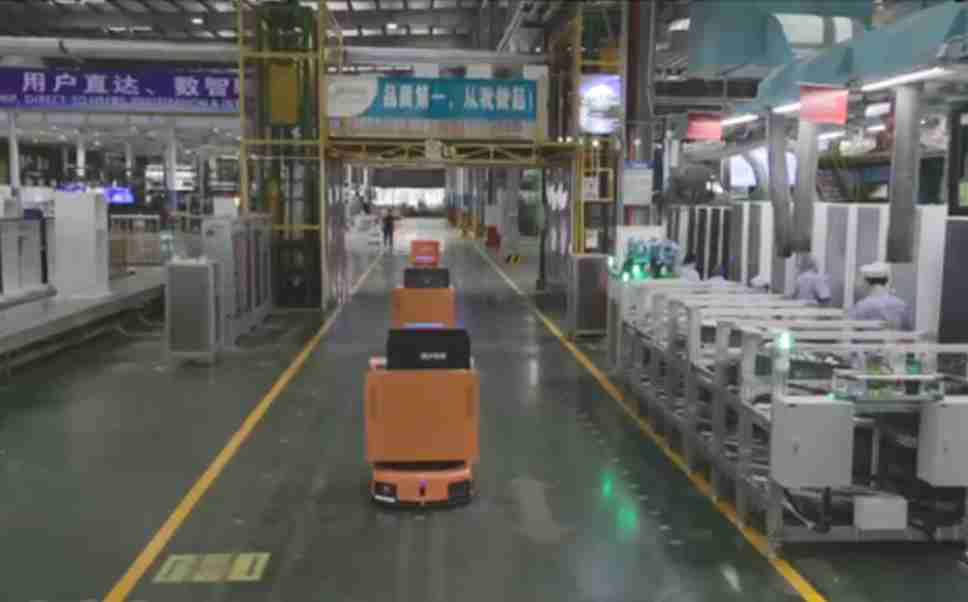 为车载冰箱物流配送打造的智能解决方案,,,,包含产中物流通过潜伏举升AMR搬运至线边,,产后成品物流智能仓储,,,流程包含产中物流智能齐套入库,,线边安灯叫料AMR智能配送至线边,,,成品入库、、、出库,,通过无人堆高车机器人,,智能仓储管理替代人工作业管理,,实现更高存储、、、更高效率、、、更具柔性化的解决方案。。